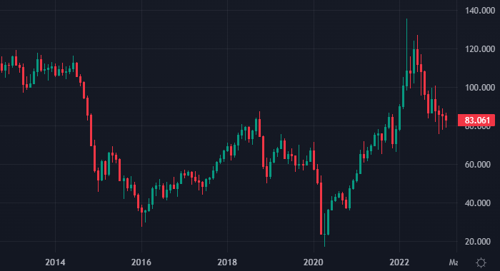 График цены нефти Brent интервалами 1 месяц