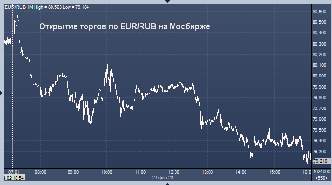 - 79,6230 рубля за 1 евро