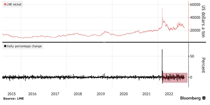 Стоимость никеля на LME упала более чем на 20% в этом году, достигнув в среду $23974 за тонну, что более чем на 75% ниже пика в районе $100000 за тонну год назад до того, как LME закрыла рынок и отменила торги.