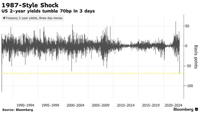 Доходность 2-летних облигаций США пережила самый большой трехдневный спад со времен финансовой паники «Черный понедельник» 1987 года