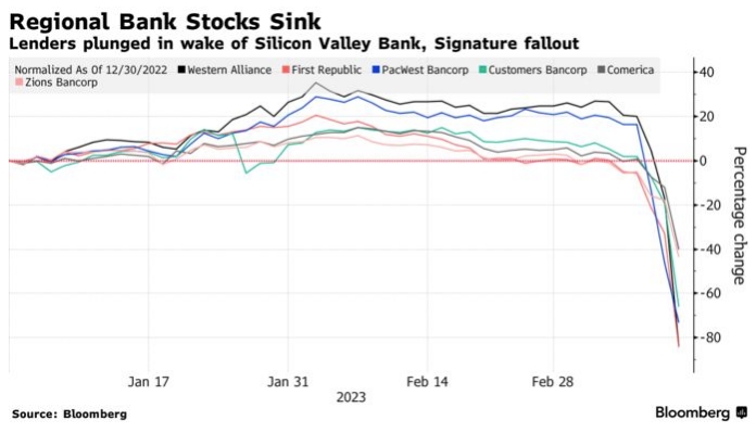 Акции региональных банков падают | Кредиторы упали из-за Silicon Valley Bank