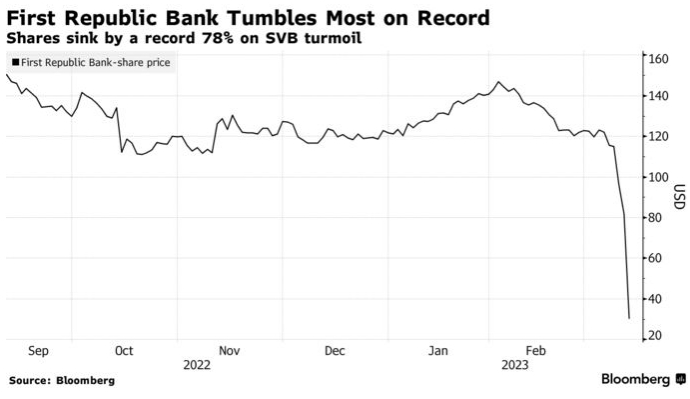 First Republic Bank продемонстрировал максимальное падение за всю историю | Акции упали на рекордные 78% из-за хаоса вокруг SVB