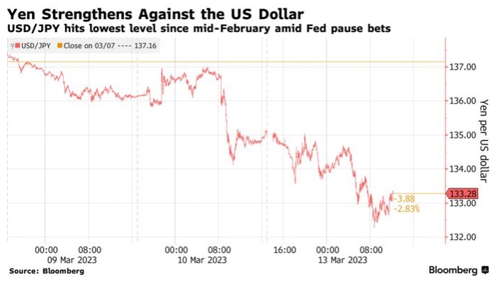 Иена укрепляется по отношению к доллару США | USD/JPY достиг самого низкого уровня с середины февраля на фоне ожиданий паузы от ФРС