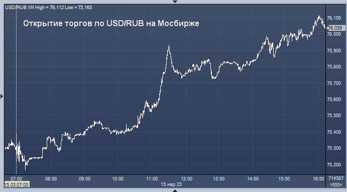 Таким образом, по официальному курсу ЦБ доллар вырос к рублю на 55 копеек, евро вырос к рублю на 36 копеек, а китайский юань вырос к рублю на 5 копеек по сравнению с официальным курсом среды. Объем торгов на Московской бирже к 16:06 мск среды составил 998,5688 млрд рублей или 13 280,1291 млн долларов. Рубль сегодня ускорил снижение вслед за ценами на нефть, которые готовы рухнуть на фоне разрастания мирового банковского кризиса.