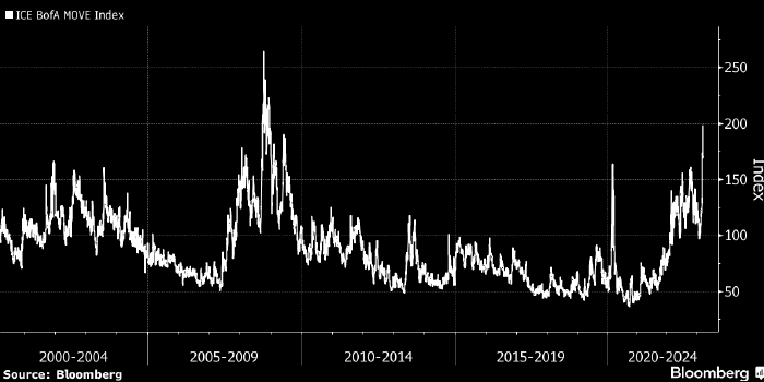Устойчивая слабость доллара, вероятно, потребует реализации сказочного сценария «Золушки», в рамках которого все будет хорошо: перспективы роста мировой экономики будут устойчивыми, а дезинфляционные тенденции возобновятся. Это ограничило бы волатильность рыночных ставок, однако вероятность такого развития событий выглядит невысокой, отмечают аналитики Goldman (на этой неделе индекс волатильности краткосрочных казначейских облигаций США достиг самого высокого уровня со времен мирового финансового кризиса 2008 года, см. график ниже).
