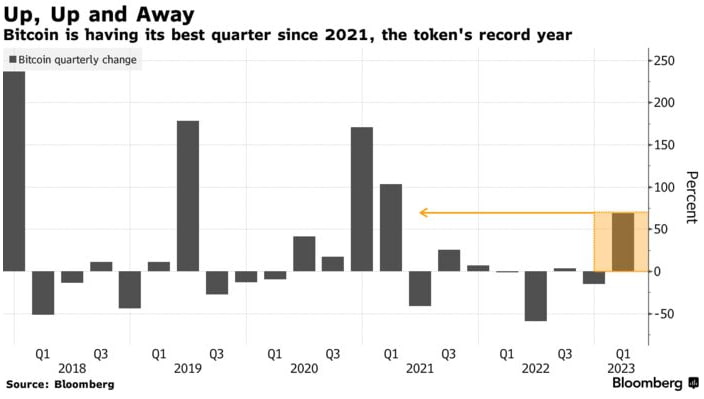 Биткойн переживает лучший квартал с 2021 года, рекордного года для токена