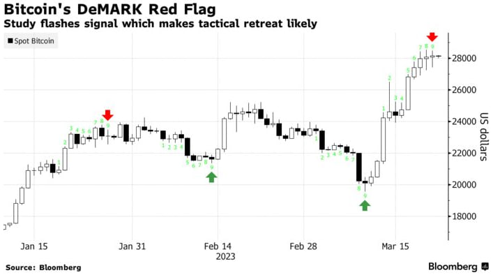 Временный откат. Красный флаг для биткойна от ДЕМАРКА | Графики мигают сигналом, который делает вероятным тактическое отступление