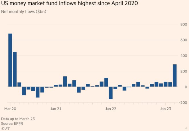 По данным поставщика данных EPFR, в марте в фонды денежного рынка влилось более 286 миллиардов долларов, что сделало этот месяц самым большим притоком со времен кризиса Covid-19.