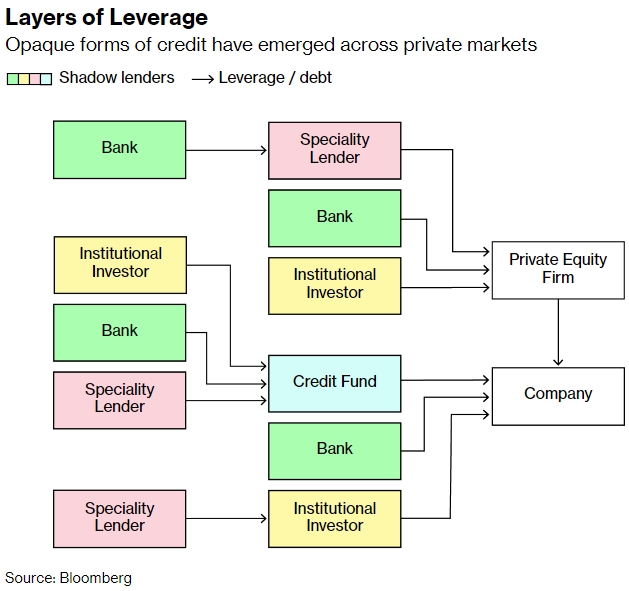 Слои кредитного плеча. На частных рынках появились непрозрачные формы кредита. Источник: Блумберг.