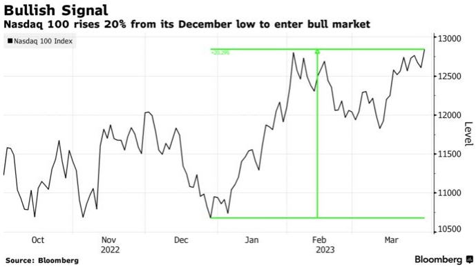 Бычий сигнал | Nasdaq 100 вырос на 20% с минимума декабря, чтобы выйти на бычий рынок
