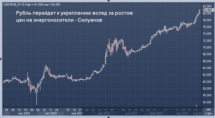 "Изменения курса связаны с притоками и оттоками валюты в нашу страну. Притоки и оттоки связаны с торговым балансом, сколько продали, сколько приобрели. Эти изменения связаны либо с увеличением импорта, либо чуть с сокращением экспортной выручки. Тенденции бывают в течение последних месяцев как в одну, так и в другую сторону. Это показатель изменения торгового баланса, это закономерно. Курс придерживается рыночных принципов, абсолютно плавает в условиях изменения внешнеэкономической конъюнктуры", - сказал Силуанов в интервью журналисту Павлу Зарубину (ВГТРК) в ответ на просьбу прокомментировать падение курса рубля ниже отметки 81 руб./$1.