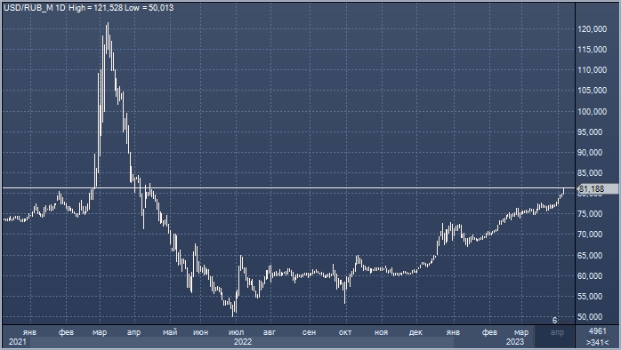 «Пока власти не начнут прилагать усилия по сдерживанию спекулятивной активности в продажах рубля, курс USDRUB будет искать локальный пик в диапазоне 80–85. Тем не менее пока мы не предполагаем, что курс сможет закрепиться в этом диапазоне надолго», — отметил Михаил Шульгин.