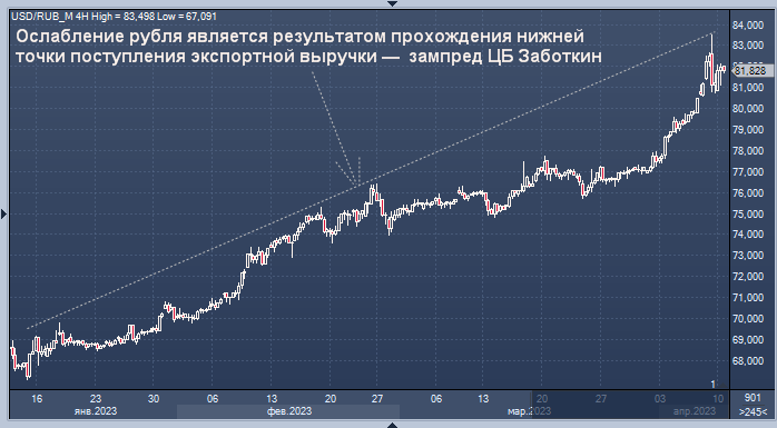 "Курс определяется совокупностью различных факторов. Импорт восстанавливается. При прочих равных восстановление импорта означает более слабый курс. То, почему курс был очень крепкий в прошлом году, это было связано с тем, что импорт был очень подавлен в результате импортных ограничений. По мере того, как выстраиваются новые логистические цепочки и расчетные цепочки, импорт восстанавливается", - заключил Заботкин.