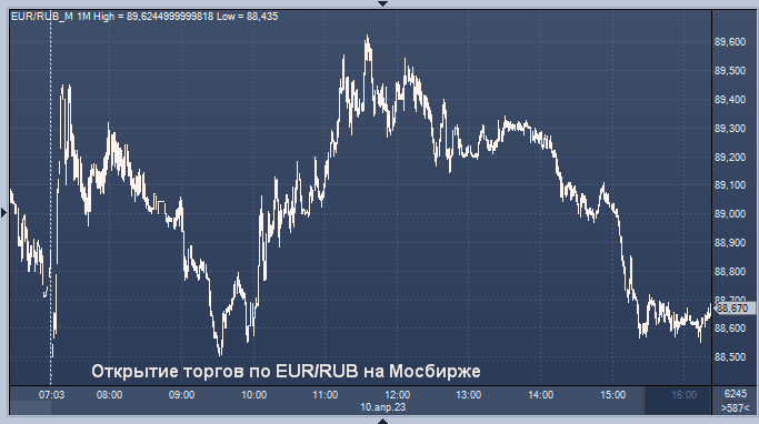 Таким образом, по официальному курсу ЦБ доллар упал к рублю на 65 копеек, евро упал к рублю на 1 рубль 11 копеек, а китайский юань egfk к рублю на 8 копеек по сравнению с официальным курсом субботы. Объем торгов на Московской бирже к 16:20 мск понедельника составил 889,3417 млрд рублей или 10 793,1389 млн долларов. Сегодня рубль растет в рамках технической коррекции. Его также поддержали заверения Минфина и ЦБ о том, что в будущем продажи экспортной выручки должны увеличиться.
