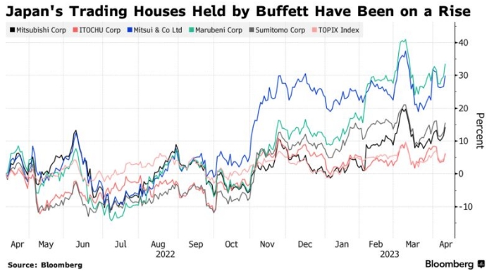 Согласно отчету Nikkei, акции крупнейших торговых домов Японии подскочили после того, как Баффет заявил, что увеличил свою долю в них до 7,4% с примерно 5% в 2020 году и надеется увеличить свою долю в акциях страны.
