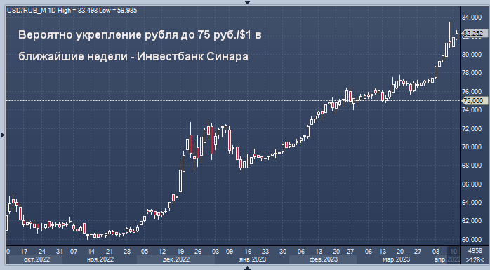 Фундаментальные факторы для ослабления рубля отсутствуют, в ближайшие недели вероятно снижение курса пары доллар/рубль до уровня 75 руб./$1, считает главный экономист "Инвестиционного банка Синара" Сергей Коныгин.