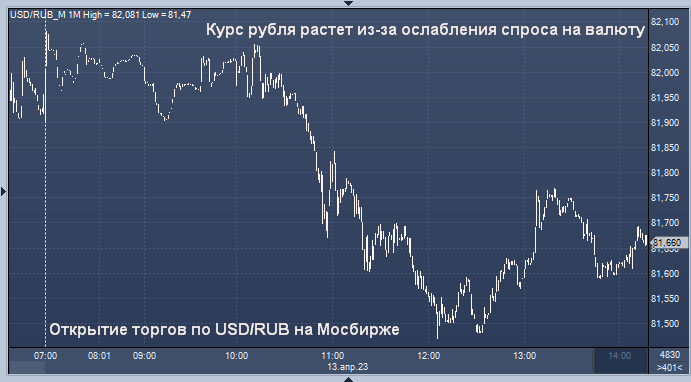 Рубль укрепляется на 0,6% на московских торгах до 81,4675/$. Индекс российских государственных облигаций почти не изменился на 128,77. Индекс Московской биржи России мало изменился на 2537,04. Нефть Брент почти не изменилась на уровне $87,29 за баррель.