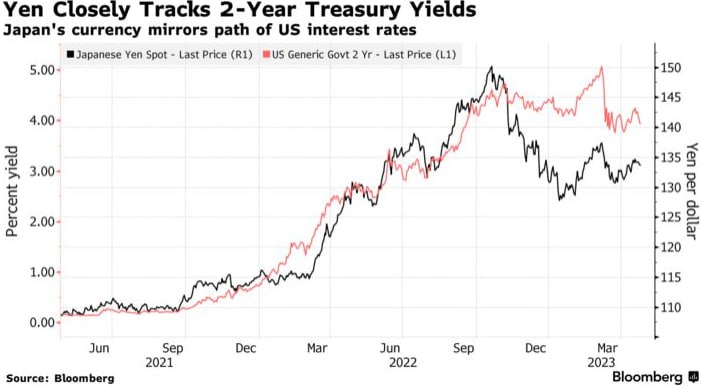 Иена внимательно отслеживает доходность 2-летних казначейских облигаций | Японская валюта повторяет траекторию процентных ставок в США