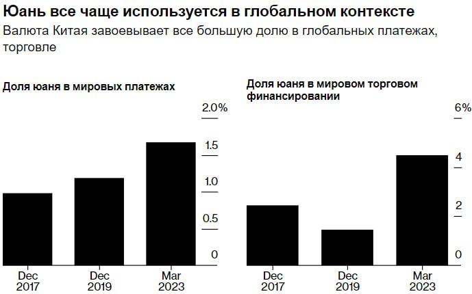 Отключенная от центральной международной платежной системы, известной как SWIFT, Россия приняла юань для торговли, частных сбережений и операций с иностранной валютой. Китай разработал собственную платформу международных платежей — CIPS — полностью отдельную от SWIFT, которая используется не только учреждениями в России, но и банками, работающими в таких странах, как Бразилия.