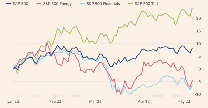 В 2021 и 2022 годах энергетический сектор индекса S&P 500, состоящий из нефтегазовых компаний, был явным лидером роста. В прошлом году он увеличился более чем на 50 процентов в прошлом году: конфликт между Россией и Украиной создал благоприятные условия для роста цен на сырую нефть, и операторы использовали полученные доходы для восстановления балансов и выплаты дивидендов.