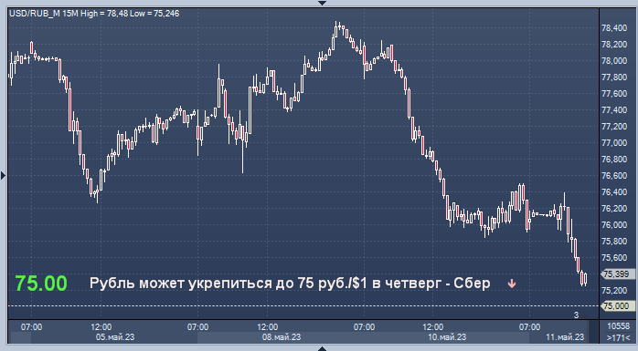 Рубль может укрепиться до 75 руб./$1 в четверг при сохранении сложившейся ситуации, полагают эксперты Сбербанка.