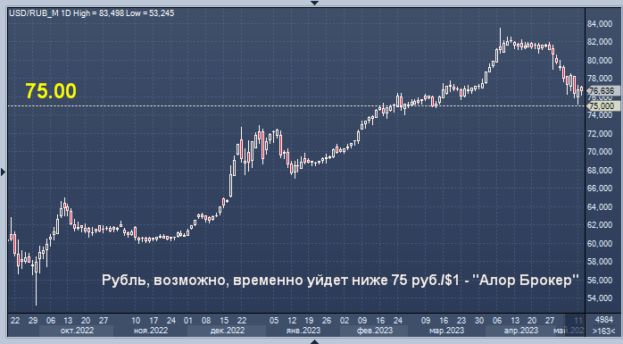 Курс рубля по отношению к доллару США, возможно, уйдет ниже 75 руб./$1 на какое-то время ввиду приближения налогового периода, считает руководитель направления инвестиционного консультирования "Алор Брокер" Алексей Антонов.
