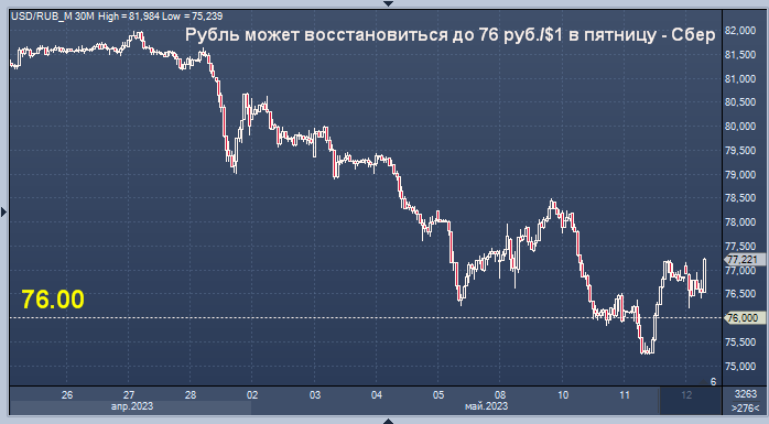 Курс рубля по отношению к доллару США может восстановиться до 76 руб./$1 на тогах в пятницу, полагают аналитики Сбербанка.