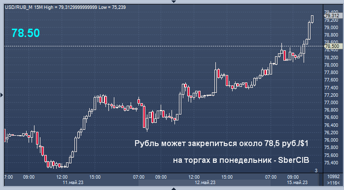 Курс пары доллар/рубль может закрепиться около уровня в 78,5 руб./$1 в течение торговой сессии в понедельник, пишут эксперты SberCIB Investment Research.