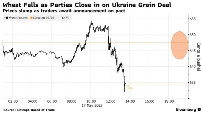 Пшеница падает, поскольку стороны приближаются к сделке по зерну Украины | Цены падают, поскольку трейдеры ждут объявления о сделке