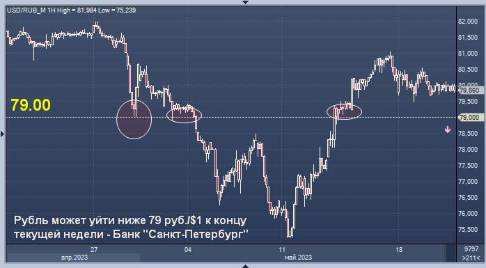 Другие курсы валют EM с утра двигаются разнонаправленно. На текущей неделе компании экспортеры могут усилить продажу валютной выручки для подготовки к уплате дивидендов и майских налогов, и на этом фоне к концу недели курс может попробовать опуститься ниже 79 руб./$1", - отмечают аналитики банка "Санкт-Петербург".