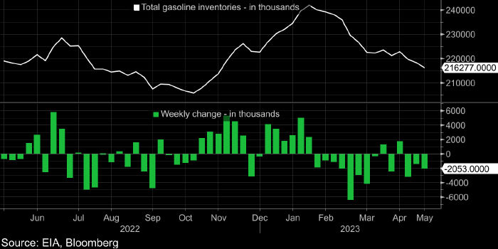 Коммерческие запасы бензина в США. Данные: Минэнерго США, источник: Bloomberg