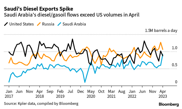 По данным Kpler, в прошлом месяце Саудовская Аравия обогнала США и стала вторым по величине в мире экспортером дизельного топлива и газойля.