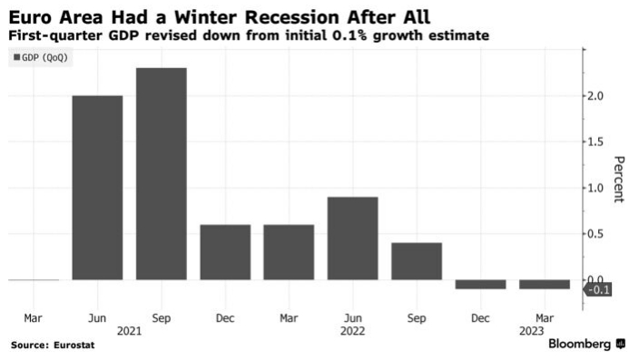 Зона евро пережила самую мягкую рецессию зимой после того, как конфликт России и Украины привела к резкому росту цен на энергоносители.