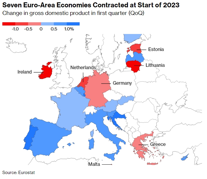 Данные следуют за цифрами Германии, показавшими, что крупнейшая экономика Европы также пережила зимнюю рецессию, как и Греция и Ирландия, в то время как Эстония не росла с конца 2021 года. Экономика еще трех стран еврозоны — Литвы, Мальты и Нидерландов — также сократилась в первом квартале.