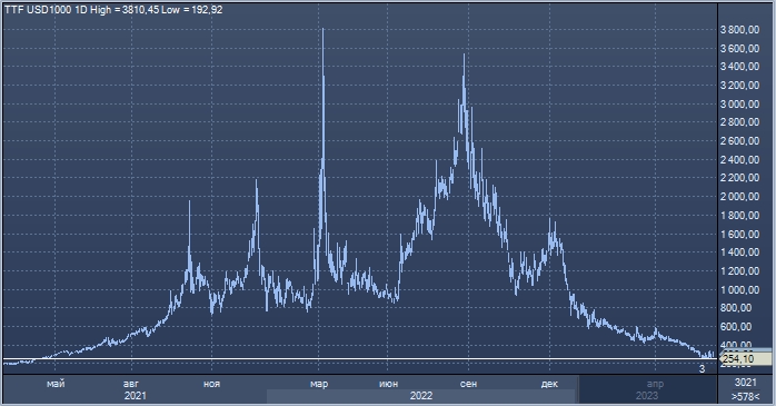 График цены ближнего фьючерса по индексу голландского хаба TTF.
