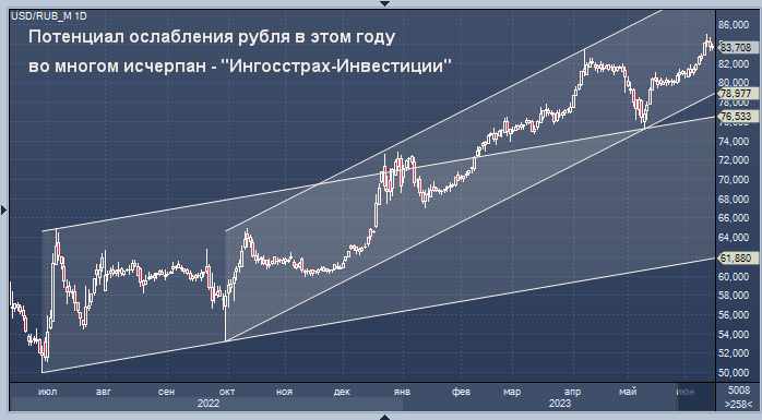 "Курс рубля продолжает подстраиваться под убегающее вверх равновесие. После спада экспорта в конце 2022 года теперь быстро растёт импорт, и это удерживает СТО в районе +5 млрд долл. Этого мало для такого крепкого курса. Для нормализации сальдо СТО в район 10 млрд долл. требуется дальнейшее ослабление.