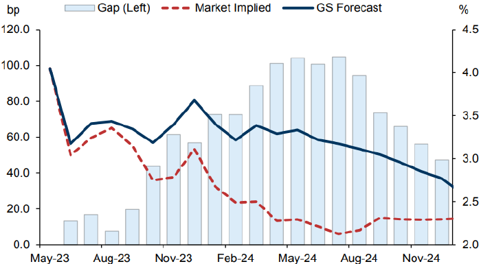 «Мы ждем дальнейшего замедления темпов роста инфляции в США, однако рыночные ожидания выглядят существенно более оптимистичными, чем наши», — пишут стратеги GS.