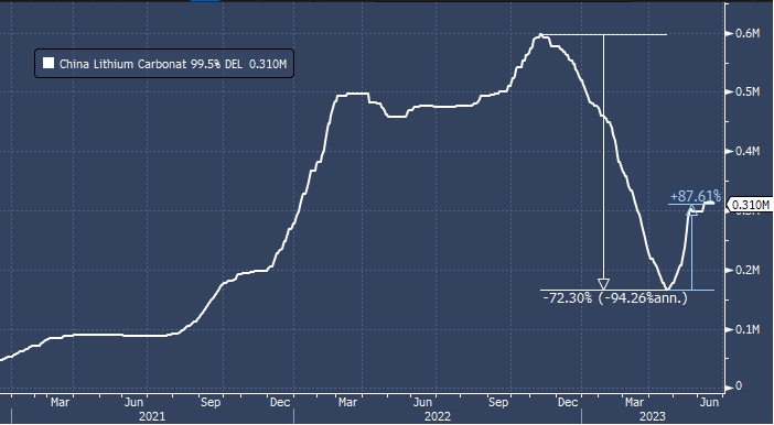 Спрос на металл упал в начале этого года, так как Пекин прекратил субсидирование электромобилей, а традиционные автопроизводители снизили цены, чтобы компенсировать вялое потребление. Но заказы на литий выросли, поскольку продажи электромобилей улучшились благодаря мерам государственной поддержки. Производство и продажи электромобилей в мае выросли на 53,7% и 71,2% соответственно в годовом исчислении, свидетельствуют данные Китайской ассоциации легковых автомобилей.