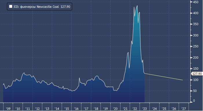 Уголь Newcastle будет продаваться по цене 110–140 долларов за тонну в 2023–2025 годах, что соответствует текущим ценам на уровне 130 долларов.