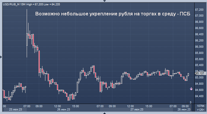 Валютная пара доллар/рубль предпримет попытки снижения в диапазоне 84,5-85 руб./$1 на торгах в среду, однако большего укрепления рубля ожидать не приходится; основную поддержку национальной валюте окажут экспортеры, говорится в комментарии аналитика Промсвязьбанка (ПСБ) Егора Жильникова.