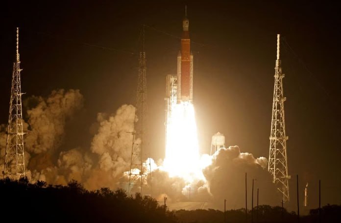 Лунная ракета следующего поколения НАСА, ракета Space Launch System (SLS) с капсулой экипажа Orion, стартует со стартового комплекса 39-B в рамках беспилотной миссии Artemis I на Луну на мысе Канаверал, Флорида, США, 16 ноября 2022 года. REUTERS/Джо Скиппер