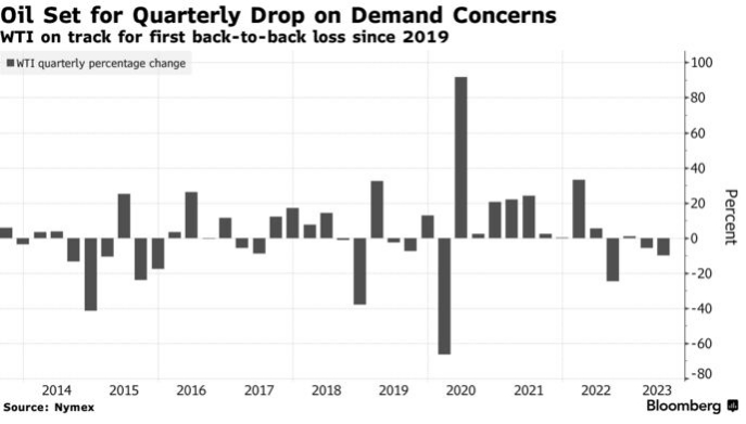 Нефть готова к квартальному падению спроса | WTI готовится к первому подряд убытку с 2019 года