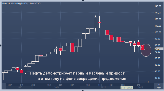 Сильные экономические данные США и сокращение запасов нефти связаны с тем, что Саудовская Аравия планирует дальнейшее сокращение добычи на 1 млн баррелей в день в июле. Это в дополнение к более широкому соглашению ОПЕК+ об ограничении поставок до 2024 года.