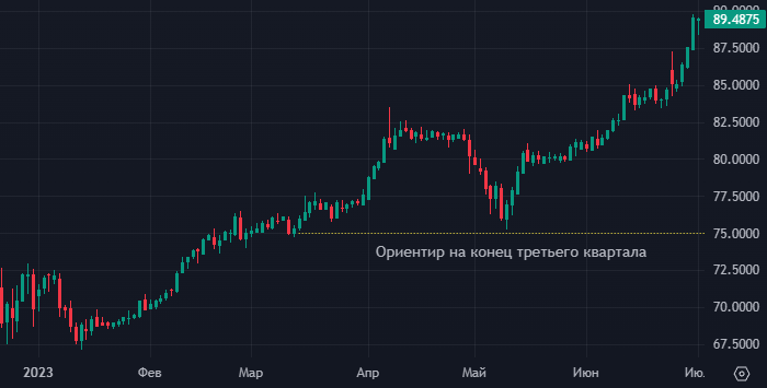 Таким образом, если регуляторы не станут подавать рынку соответствующих сигналов, то курс рубля может остаться волатильным. Тем не менее ориентир для пары доллар/рубль на конец третьего квартала и на четвертый квартал составляет 75, резюмируют аналитики Росбанка.