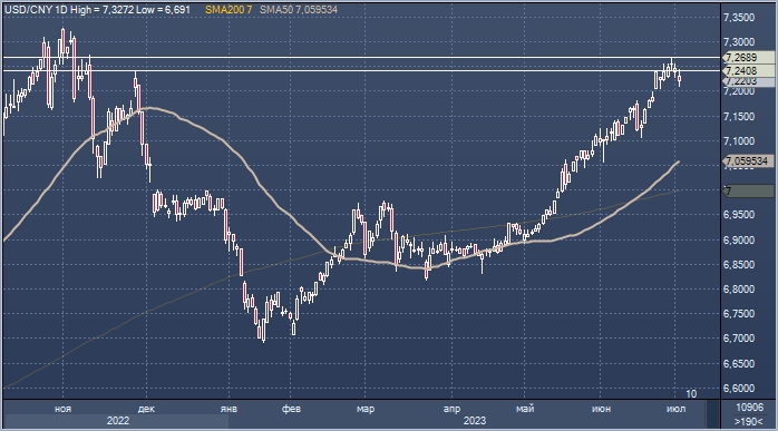 График доллар/юаня интервалами в 1 день