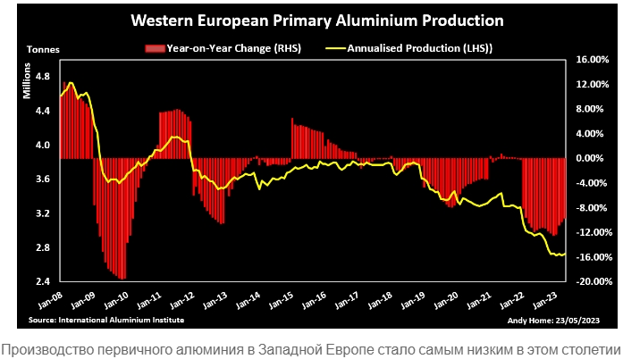 Алюминиевые заводы потребляют много энергии, и этот сектор еще раз пострадал от энергетического кризиса, последовавшего за конфликтом России и Украины.