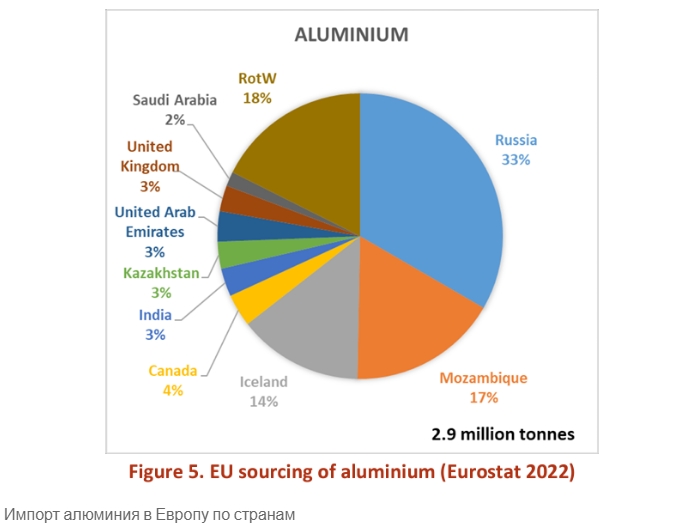 Однако ключевое различие заключается в том, откуда Европа получает бокситы и первичный алюминий.