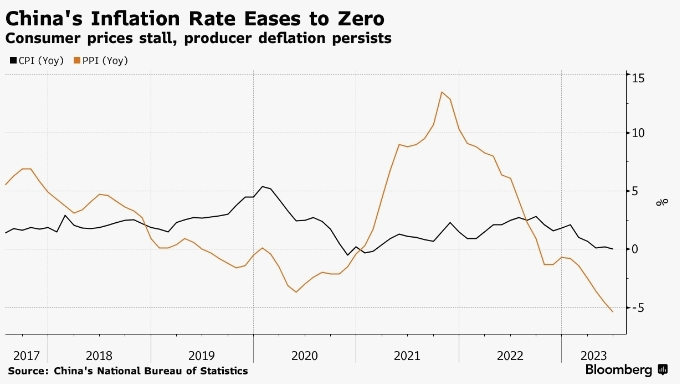 «Нулевая инфляция потребительских цен и более глубокое падение цен производителей в июне свидетельствуют о том, что восстановление Китая после covid еще больше замедлилось. Ослабление динамики цен является признаком слабого спроса, который омрачает перспективы роста. Потребность в дополнительных стимулирующих мерах со стороны Народного банка Китая растет», — отметил Дэвид Ку, экономист Bloomberg Economics.