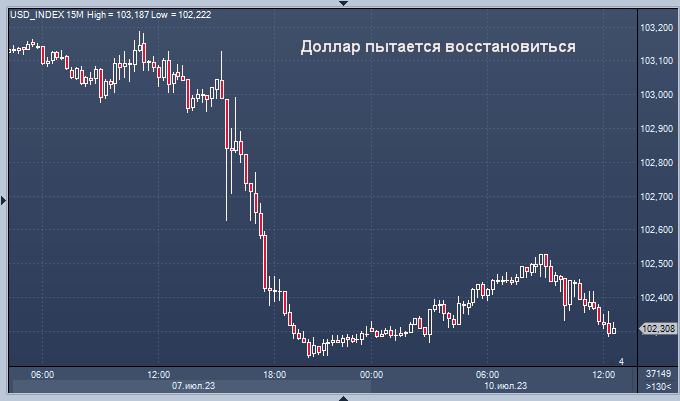 Индекс доллара, который отслеживает курс доллара по отношению к корзине основных валют, вырос на 0,15% до 102,44 после падения на 0,87% в пятницу, после того как число занятых в несельскохозяйственном секторе США увеличилось на 209 000 в июне, впервые за 15 месяцев не оправдав ожиданий рынка.
