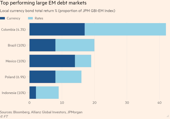 «В этом году произошло значительное расхождение между долговыми обязательствами развивающихся рынков в местной валюте и развитыми рынками», — сказал Ричард Хаус, главный инвестиционный директор по долговым обязательствам развивающихся рынков в Allianz Global Investors.